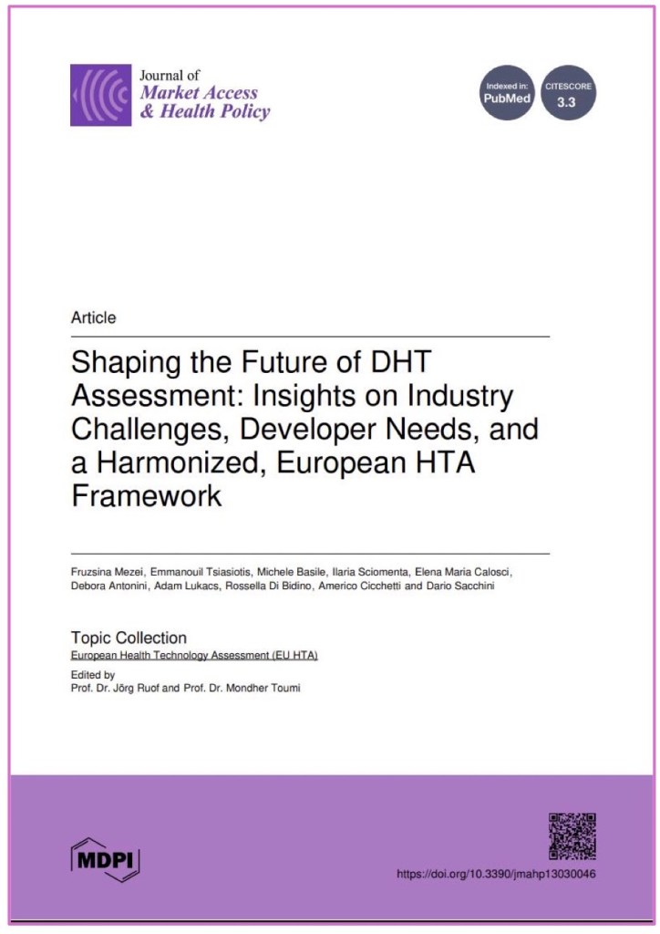 Mezei, F.; Tsiasiotis, E.; Basile, M.; Sciomenta, I.; Calosci, E.M.; Antonini, D.; Lukacs, A.; Di Bidino, R.; Cicchetti, A.; Sacchini, D. Shaping the Future of DHT Assessment: Insights on Industry Challenges, Developer Needs, and a Harmonized, European HTA Framework. J. Mark. Access Health Policy 2025, 13, 46. https://doi.org/10.3390/jmahp13030046
